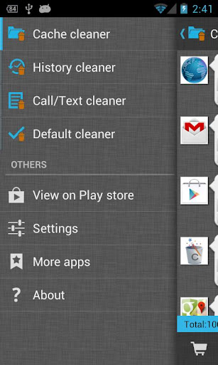 There are four cleaners included in this app. Cache Cleaner, History Cleaner and Call/Text log Cleaner help you to get more free space for the internal phone storage by clearing apps cached files, data files, or search/navigation history records. If you have selected to launch apps by default for some actions. Default Cleaner helps you to clear the default settings.