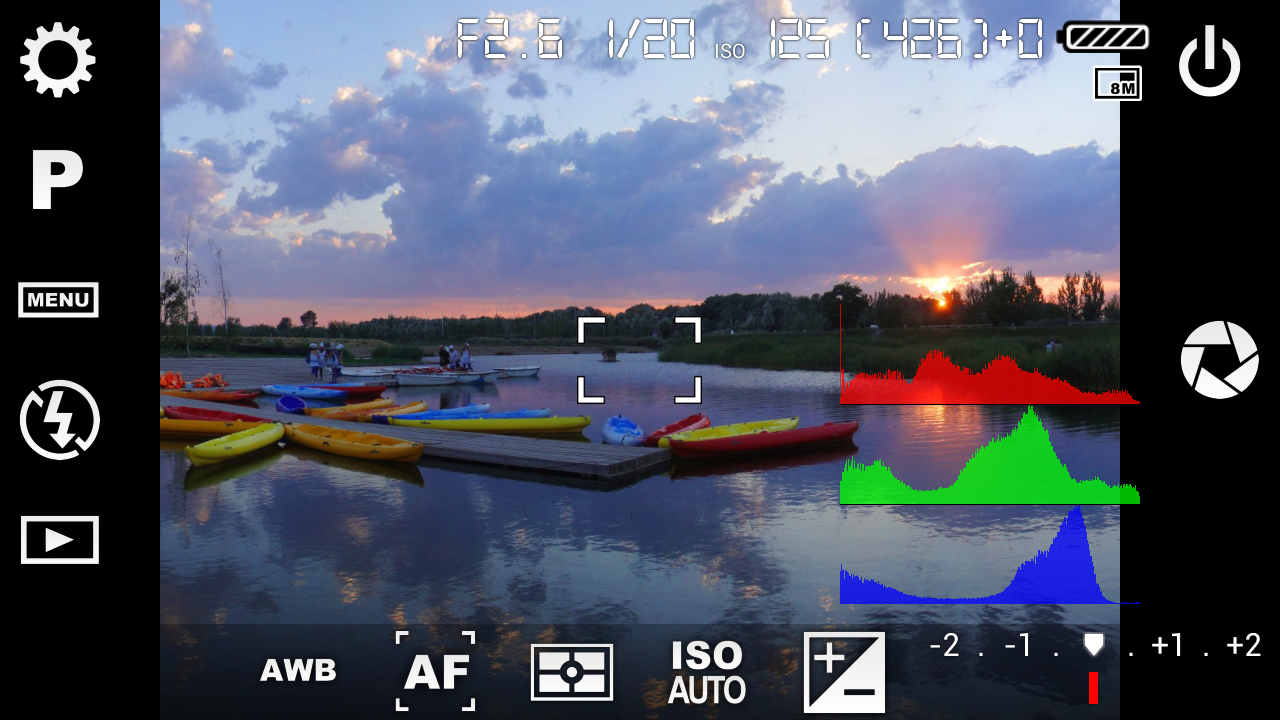This camera application completely avoids scene modes, instead you get full manual control over all photographic parameters, just like you do with a reflex camera, so you can ultimately control every aspect of the picture, and leave the post-processing to the computer. So after your DSLR, you will never miss a photo opportunity again, being able to capture it with the closer sensation to your DSLR as possible.